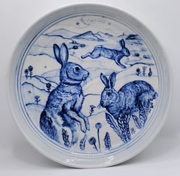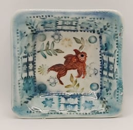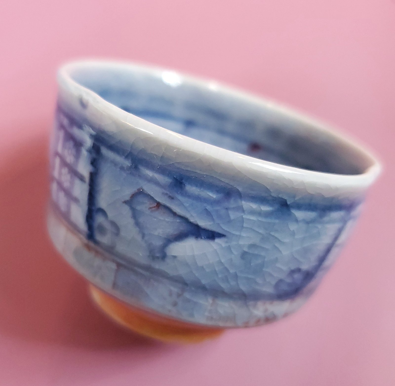 Wood fired Small Blue Mandala Bird Tea Bowl